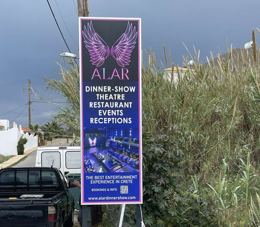 Αναλαμβάνουμε επαγγελματικές επιγραφές για κάθε κλάδο, όπως καταστήματα λιανικής, εστιατόρια, καφετέριες, φαρμακεία, ξενοδοχεία και επιχειρήσεις παροχής υπηρεσιών.