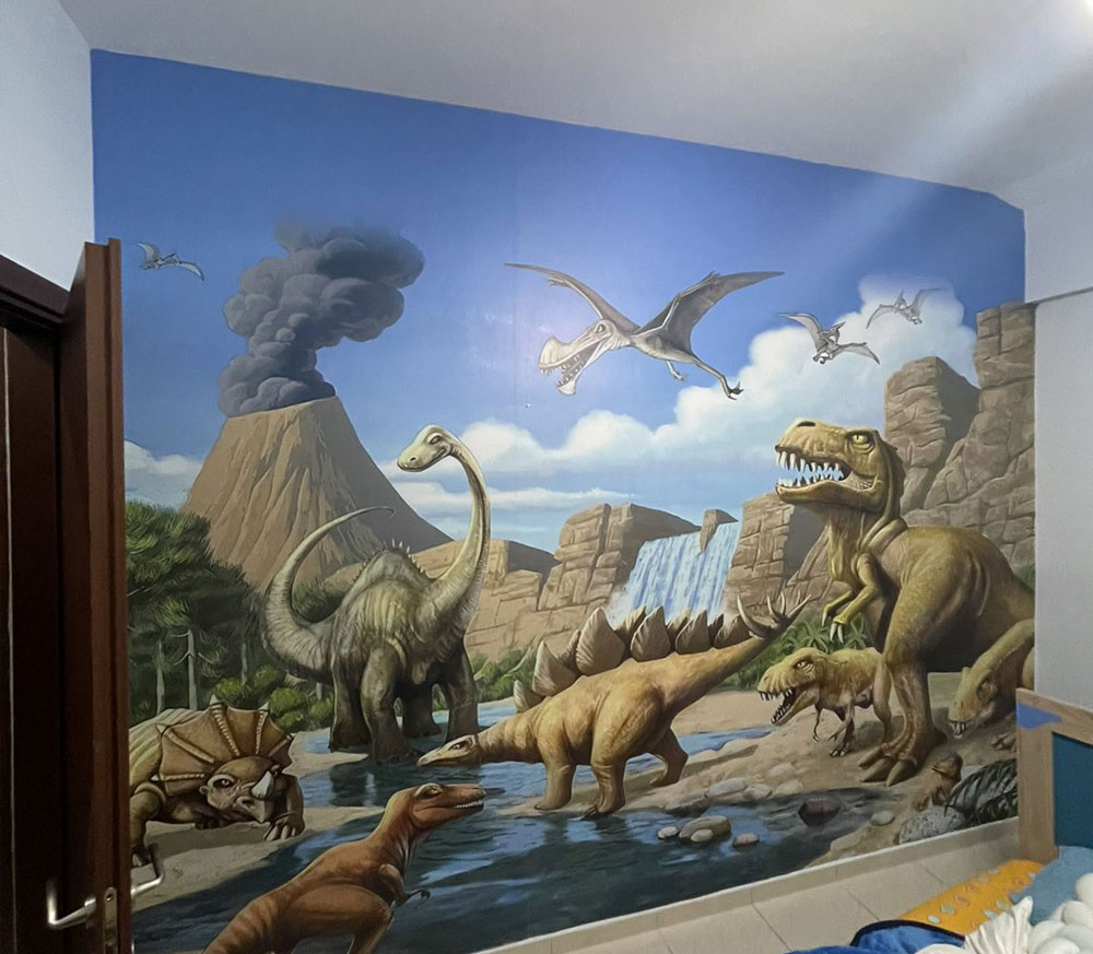 Παραδείγματα της δουλειά μας: θεματικές ταπετσαρίες για παιδικά δωμάτια, custom σχεδιασμένα μοτίβα για καφετέριες στο Ηράκλειο, εταιρικά γραφεία με branding walls στην Κρήτη.